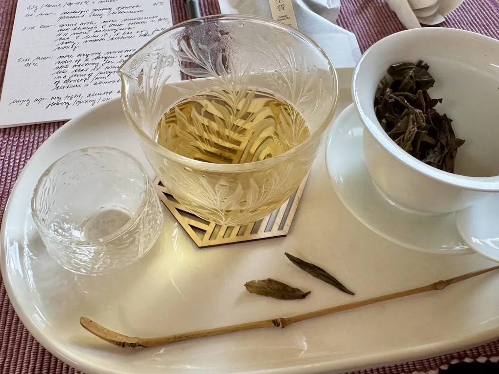 Dry hot leaves carry a typical sheng profile, but there’s something already softened in it, like it’s not entirely fresh. There’s a creamy undertone that makes everything gentler, along with a sense of quiet age, even though it’s a 2025.